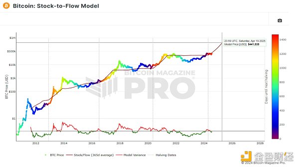 庫存到流量模型是一個(gè)基于稀缺性預(yù)測(cè)Bitcoin價(jià)格的熱門框架,它考慮了這些逐步減少的通脹。該模型將Bitcoin的現(xiàn)有庫存(現(xiàn)有供應(yīng)量)與流量(新鑄造的Bitcoin)進(jìn)行對(duì)比。由于減半事件和恒定的區(qū)塊增加,Bitcoin的流量減少,其庫存到流量比率上升,這表明稀缺性增加,理論上價(jià)值也會(huì)提升。