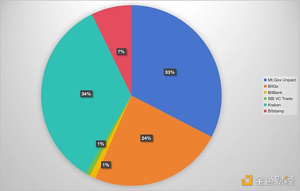 Mt.Gox 一共通過 5 家交易所執行賠付,分別是 Bitbank、SBIVCTrade、Kraken、Bitstamp、BitGo,由于在 7 月 31 日之前前四家交易所都已經收到來自 Mt.Gox 的Bitcoin,所以在當日收到 33963 枚Bitcoin的地址極有可能屬于 BitGo。