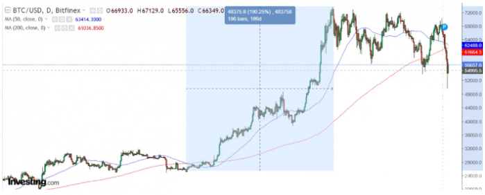 近日,Bitcoin(BTC)價格在周一跌至49,577美元的低點,市場關注的焦點轉向了可能形成的“死亡交叉”模式。這一技術圖形常常引發投資者的緊張情緒,并激起市場的悲觀情緒。