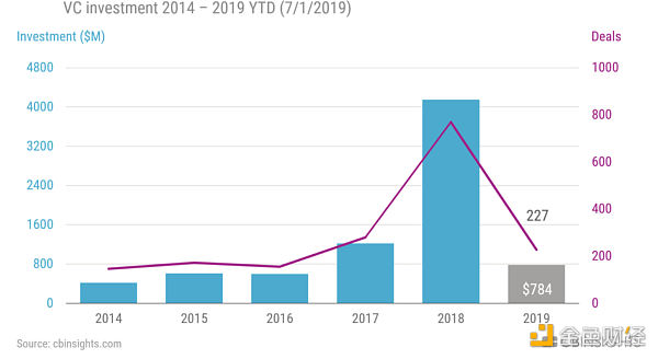 2016年,隨著金融科技投資的減少,風險投資對Crypto市場的投資也出現下滑。根據CBInsights的數據,對Bitcoin和Blockchain初創公司的投資較2015年的水平下降了27%,回到了2014年的數字。