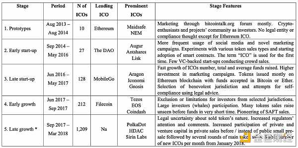 2013年至2018年*I*C*O的發展階段(Boreiko,D.和Sahdev,N.“*I*C*O還是不*I*C*O——首次Tokens發行和Tokens銷售的實證分析。”)