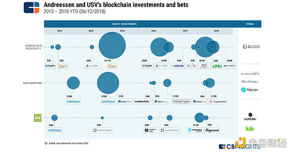 2013年至2018年期間兩家領先投資基金的股權投資摘要:UnionSquareVentures和AndreessenHorowitz