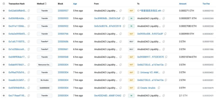 AnubisDAO于2021年10月28日成立,試圖借助古埃及神阿努比斯的形象推動(dòng)memecoin熱潮。該項(xiàng)目結(jié)合了流動(dòng)性鏈接機(jī)制和Shiba InuTokens的存儲(chǔ),起初似乎獲得了一定成功。僅在啟動(dòng)后的24小時(shí)內(nèi),約13,597 ETH從銷售池被轉(zhuǎn)移至多個(gè)未知的Ethereum地址,導(dǎo)致投資者損失約6000萬(wàn)美元。