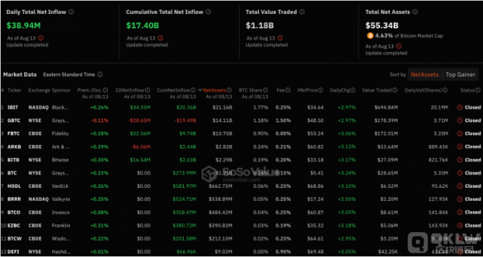 在本周二的交易時段,BitcoinETF的流入量持續增加,當天流入量達到3894萬美元。