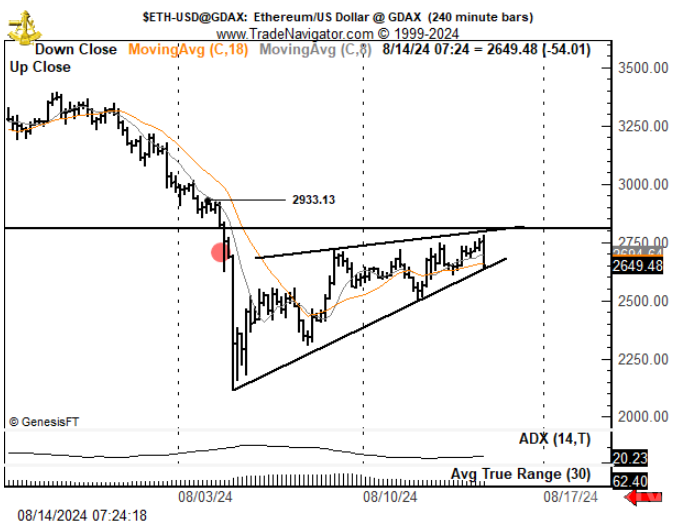 盡管ETH在8月12日一度漲至2750美元,但在2800美元的供應區(qū)域遇到了強勁阻力,當前價格接近這一區(qū)域。McKenna表示,長期來看,他對當前價格的看漲預期并不強烈。
