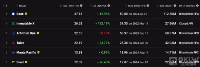 Ethereum Layer 2 TPS 排名變動(dòng),Base 超越主網(wǎng)