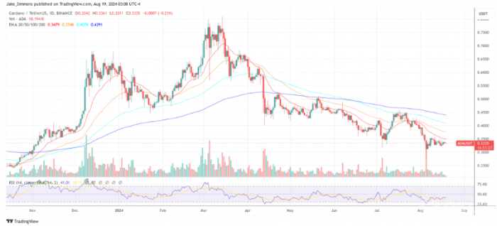 截至報道時,ADA 的交易價格為 0.33 美元。