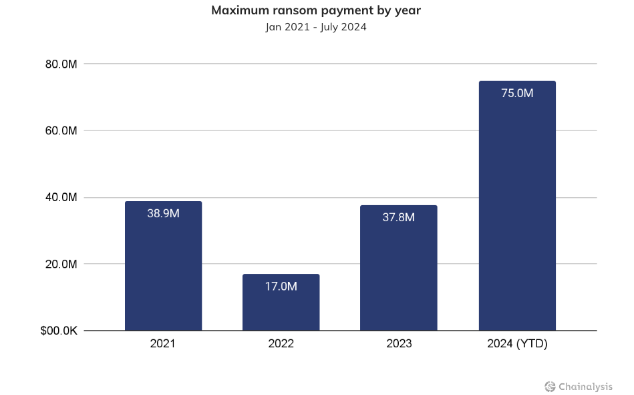 另一方面,勒索軟件支付額也達到了新的高峰。據統計,迄今為止向Dark Angels勒索軟件組織支付的最高金額約為7500萬美元,較去年同期增長了96%,較2019年更是暴漲了335%。