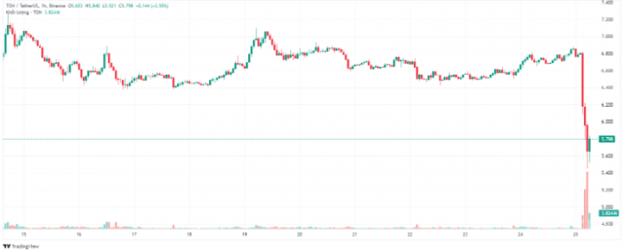 消息傳出后,TG原生cryptoTON價格受到沖擊。短短一個小時內,TON價格從8月24日的高位6.86美元暴跌16%至5.70美元。