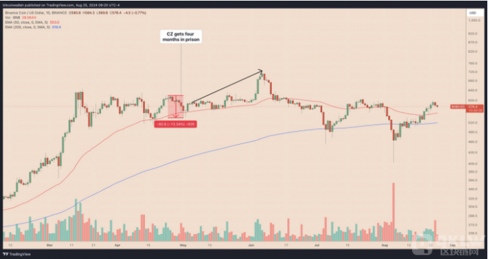 盡管目前面臨挑戰(zhàn),但一些技術(shù)指標(biāo)顯示,TON有可能在未來幾周內(nèi)反彈。其價格走勢與幣安前首席執(zhí)行官趙長鵬被判刑前后的情況相似。趙長鵬被捕后,BNB價格經(jīng)歷了短期的下跌,但隨后強(qiáng)勁反彈,最終上漲近35%。