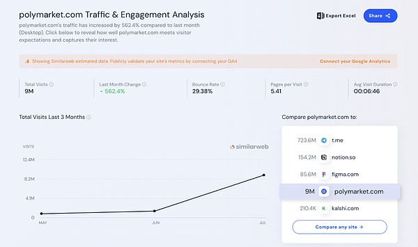 最后,季節性驅動因素在提高這些產品的知名度和幫助產品達到PMF方面起著重要作用。正如我上面提到的,這兩種產品都對現實生活中的事件高度敏感,特別是在名人、選舉和文化事件方面,這些事件是"可推測的"。例如,由于即將到來的美國大選,Polymarket成功地從不同渠道獲得了大量的關注。同時,盡管目前市場份額有限,但非選舉投注市場的受歡迎程度和交易量也出現了激增。