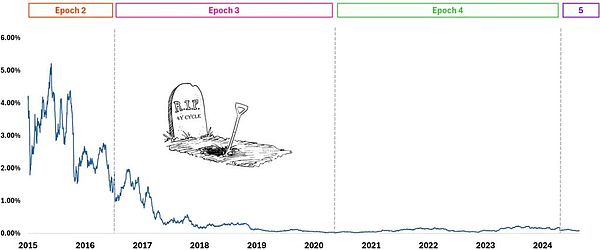 我們認為,2016年是對Bitcoin產(chǎn)生重大、根本性影響的最后一次減半。自那以后,在加密市場日益成熟和多樣化的背景下,礦工的BTC區(qū)塊獎勵規(guī)模變得微不足道。