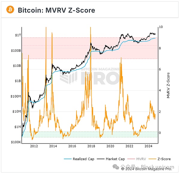 除了偶發事件之外,在Bitcoin與流動性的相關性減弱的時期,另一個值得注意的模式是,這些情況通常與Bitcoin價格達到極端估值隨后急劇下跌的時間相吻合。這在2013年、2017年和2021年的牛市高峰中很明顯,當時Bitcoin與流動性的相關性隨著其價格從高位大幅下跌而脫鉤。