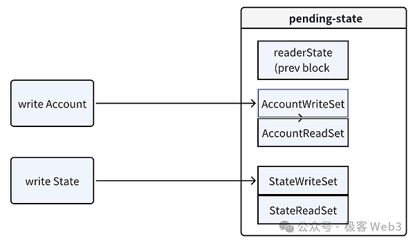 2.為每個線程分配臨時狀態數據庫:Reddio為每個線程都分配一個獨立的臨時狀態數據庫(pending-stateDB)。各個線程在執行交易時,不會直接修改全局的stateDB,而是將狀態變化結果暫時記錄在pending-stateDB中。