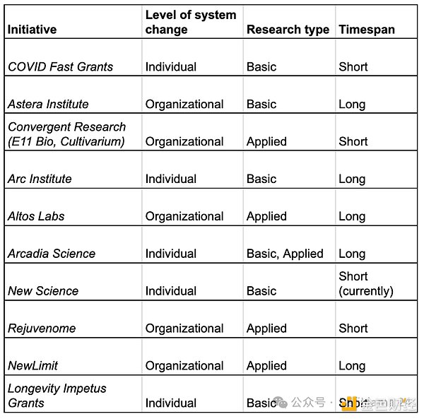 如今仍有新的科學創業公司在建立,如NewLimit、ArcadiaScience和AltosLabs。但現在也有研究機構的例子,如ArcInstitute和NewScience,甚至還有加密原生實驗的新興例子,如VitaDAO和LabDAO。并非一種方法取代了另一種,而是現在有更多的人嘗試不同的事物,這是一個不斷增長、蓬勃發展的領域的標志。