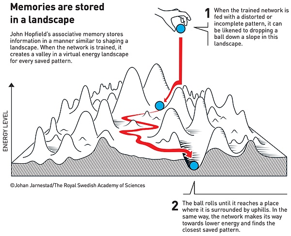 與地球不同,霍普菲爾德網絡中山脈的最終走向不是大自然創造的,而是人設定的。