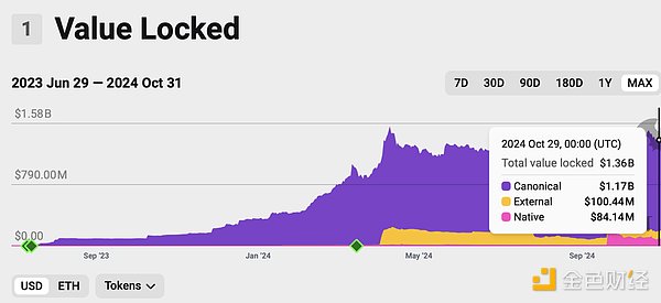 正是在這個背景下,當(dāng)前L2賽道蓬勃發(fā)展。根據(jù)L2Beat的數(shù)據(jù),市場上已有110條L2或L3擴展解決方案在運行,然而,只有少數(shù)L2能獲得主流認(rèn)可,并產(chǎn)生大量TVL和用戶。截至2024年10月24日,L2擴展解決方案的TVL已經(jīng)達到了376.2億美元,與一年前相比翻了3倍,顯示出了強勁的發(fā)展勢頭和用戶需求。