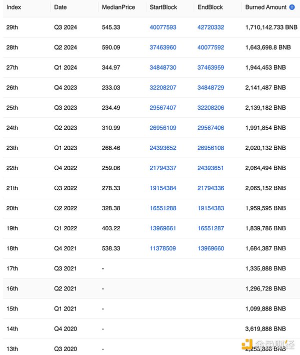 BNB歷史銷毀數據 來源