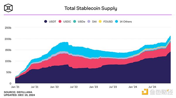 圖8: 穩(wěn)定幣總供給量,其中USDT占比為71.1%且占比逐漸穩(wěn)定