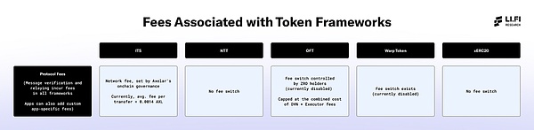 DAO治理的費用開關的存在意味著Tokens發行者可能需要向Tokens框架背后的互操作性協議(例如,OFT的LayerZero或WarpToken的Hyperlane)支付額外費用。這引入了對DAO治理的依賴,因為對費用開關的任何更改都會直接影響通過這些框架發行的Tokens,使它們受到DAO對費用結構的決策影響。