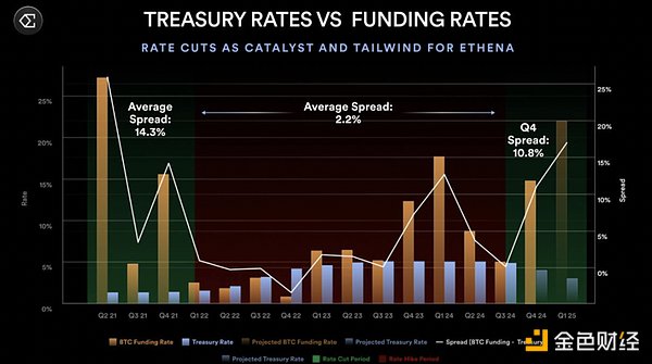 在這種情況下,Ethena會扮演利率套利工具的角色,促使DeFi、CeFi和傳統(tǒng)金融之間的資本流動和利率市場融合。