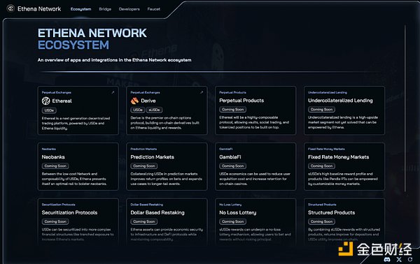 我們共同的目標是,為十億人提供一個像發(fā)送消息一樣容易使用的支付、儲蓄產(chǎn)品。Ethena生態(tài)網(wǎng)絡(luò)