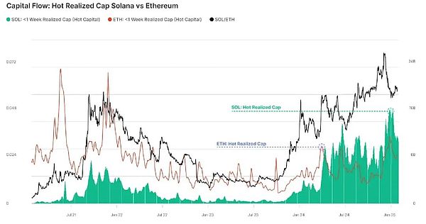 Solana的生態(tài)在2023-2025年表現(xiàn)非凡,RealizedCap的增長令人矚目,甚至超越了Bitcoin和Ethereum,凸顯其在數(shù)字資產(chǎn)市場中的嶄新地位。隨著散戶持有量和活躍地址數(shù)持續(xù)增長,Solana的市場吸引力愈發(fā)強(qiáng)勁。此外,強(qiáng)勁的交易需求與持續(xù)增長的資產(chǎn)轉(zhuǎn)移量,進(jìn)一步驗(yàn)證了Solana生態(tài)系統(tǒng)的活躍度和用戶參與度,展現(xiàn)出強(qiáng)大的增長勢頭與巨大的發(fā)展?jié)摿Αolana不僅正在突破現(xiàn)有局限,還在未來的Blockchain賽道中,快速成為不可忽視的核心力量。