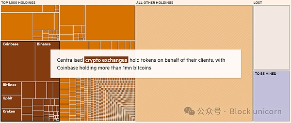 中心化Crypto交易所代表其客戶持有Tokens,Coinbase持有超過100萬枚Bitcoin。