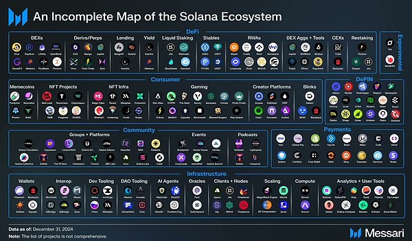 另一方面,這并不意味著Solana就不存在問題,就目前的結(jié)構(gòu)來(lái)看,盡管DeFi、DePin亦是火熱,但Solana的確高度依賴MEME生態(tài)。根據(jù)Messari發(fā)布的2024年第四季度的數(shù)據(jù),Solana應(yīng)用收入從第三季度的2.68億美元躍升至年末第四季度的8.4億美元,增長(zhǎng)高達(dá)213%,而這一增長(zhǎng),主要?dú)w因于MEME。其中Pump.fun在第四季度產(chǎn)生收入達(dá)到了2.35億美元,DeFi交易終端Photon和DEXRaydium,分別錄得1.4億美元和7400萬(wàn)美元的收入。