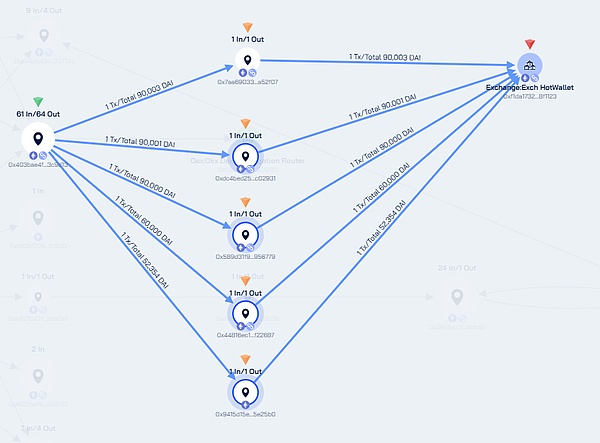 Bybit黑客銷贓模式趨于穩(wěn)定,主要使用Thorchain將資產(chǎn)轉(zhuǎn)移至BTC公鏈,以及利用OKXDEX兌換為DAI再進(jìn)行流轉(zhuǎn)。