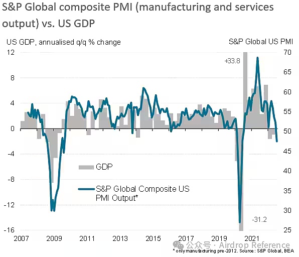 美國制造業PMI 已經連續兩個月進入擴張模式(大于50),這被視為“商業周期積極逆轉”的信號。 RealVision創始人RaoulPal指出,PMI領先于經濟大約一個月,而且,它不僅僅領先于經濟,它領先于所有資產。他認為,隨著商業周期的上行,Bitcoin有望在2025年底甚至2026年初見頂。