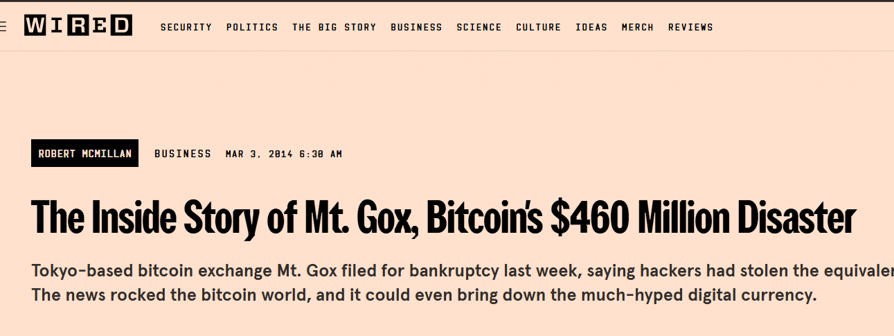 一夜之間,媒體統一口徑:“Bitcoin終結了”。CNBC、BBC、紐約時報都在頭版報道Mt.Gox丑聞,BTC價格從1160美元跌至150美元,跌幅超 86%。