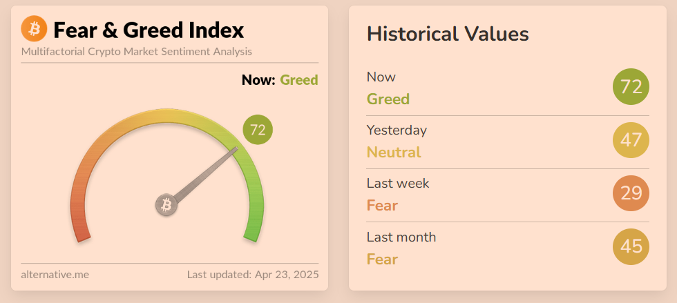 在DCA的基礎上,如果你希望稍微提高投資的效率,可以引入市場情緒指標作為輔助判斷。其中,“Crypto恐懼與貪婪指數”(CryptoFear&GreedIndex)是一個廣受關注的指標。