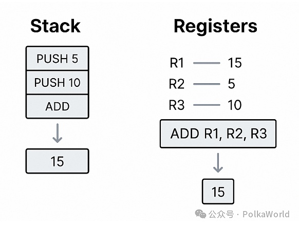 堆棧式vs寄存器式計算模型對比圖Ethereum的選擇:從概念出發(fā),構(gòu)想下一代ZK原生虛擬機