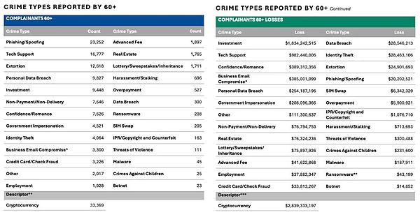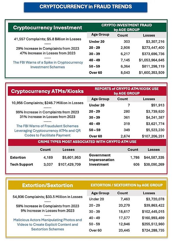 Crypto相關(guān)投訴達(dá)149,686起,造成93億美元損失,損失金額同比增長66%。受害者中,60歲以上群體占比最高。