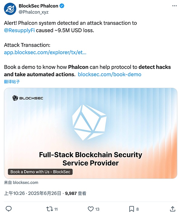 2025年6月26日02:26(UTC),項目方未果并確認無法造成更多損失后,BlockSec發(fā)布公開預(yù)警[2]。