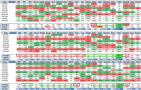 如果進一步看個股和板塊結構,NedDavisResearch的研究顯示美股中的防御性板塊在歷次降息中的表現會更好: