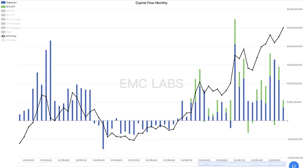 BTCSpotETF及穩(wěn)定幣通道資金流動月度統(tǒng)計