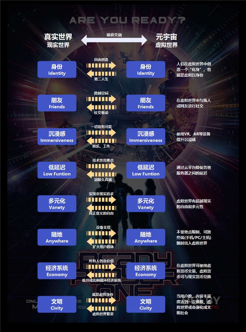 雖然也有元宇宙六大要素(可交互、共識規(guī)則、價(jià)值生成、體驗(yàn)、經(jīng)濟(jì)系統(tǒng))的說法,但不管哪種說法,我們在元宇宙感受到的,理論上應(yīng)該跟真實(shí)世界感覺一樣,并且我們可以在元宇宙世界和真實(shí)世界來回穿梭。