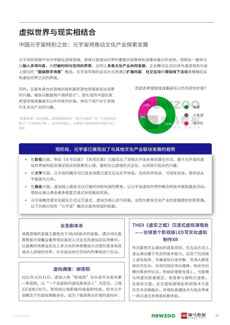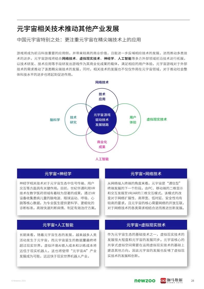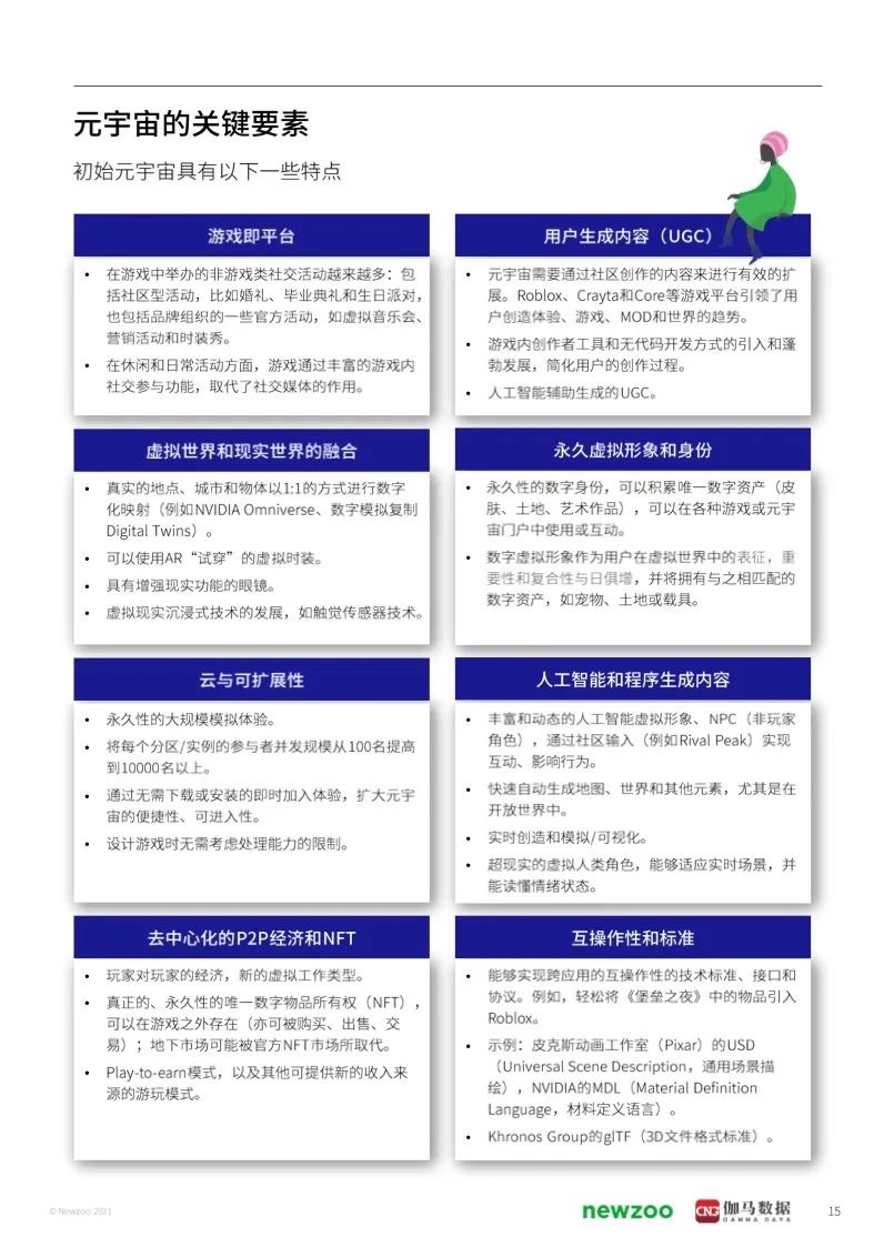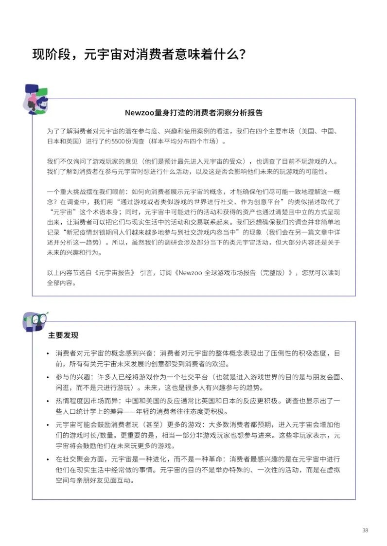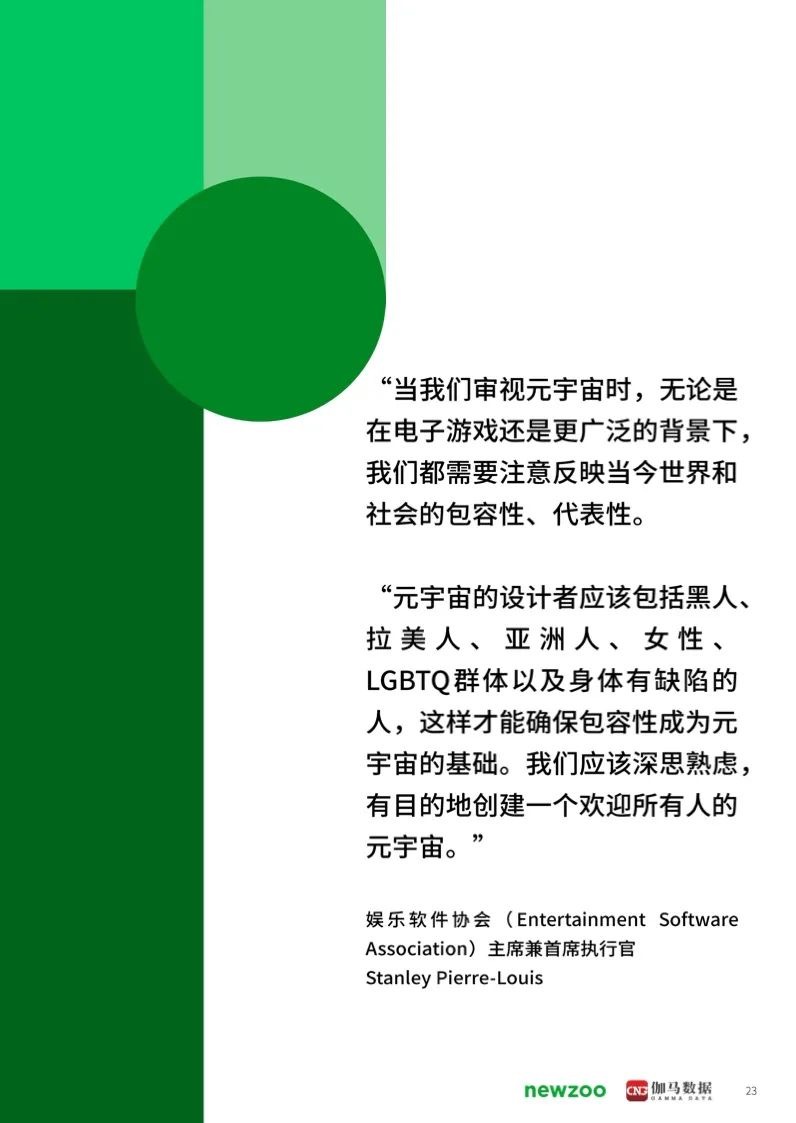 本次報(bào)告由Newzoo聯(lián)合伽馬數(shù)據(jù)聯(lián)合發(fā)布。報(bào)告對(duì)于全球以及cn市場(chǎng)的元宇宙發(fā)展進(jìn)行了深入的分析。話題包括諸如元宇宙的歷史于演變、游戲生態(tài)系統(tǒng)的機(jī)遇和影響、消費(fèi)者洞察、以及cn元宇宙發(fā)展?fàn)顩r等特別主題。