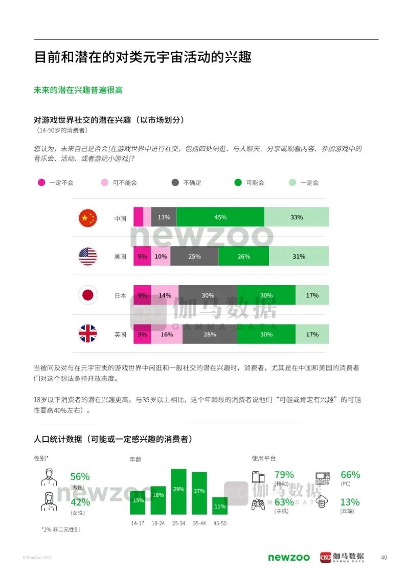 這份報(bào)告還采訪了在實(shí)現(xiàn)元宇宙的道路上扮演著不同角色的關(guān)鍵企業(yè),包括了The Sandbox、英偉達(dá)、Unity、世紀(jì)華通、元境等,并且在cn和全球做了大量大用戶調(diào)研。