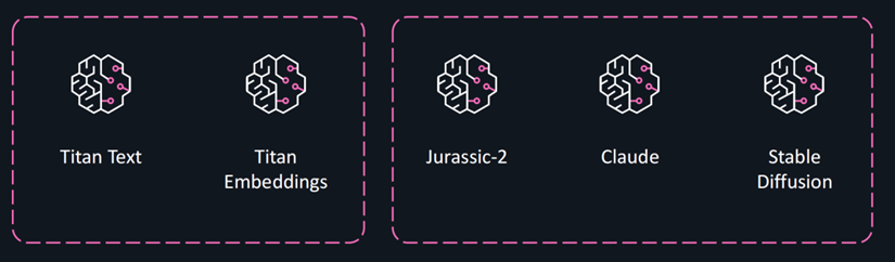 左:來自亞馬遜云科技的基礎(chǔ)模型;右:來自 AI21 Labs、Anthropic 和 Stability AI 的基礎(chǔ)模型