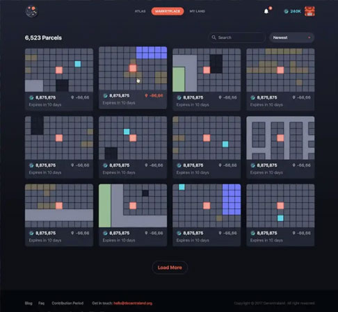 Decentraland上的土地拍賣畫面;